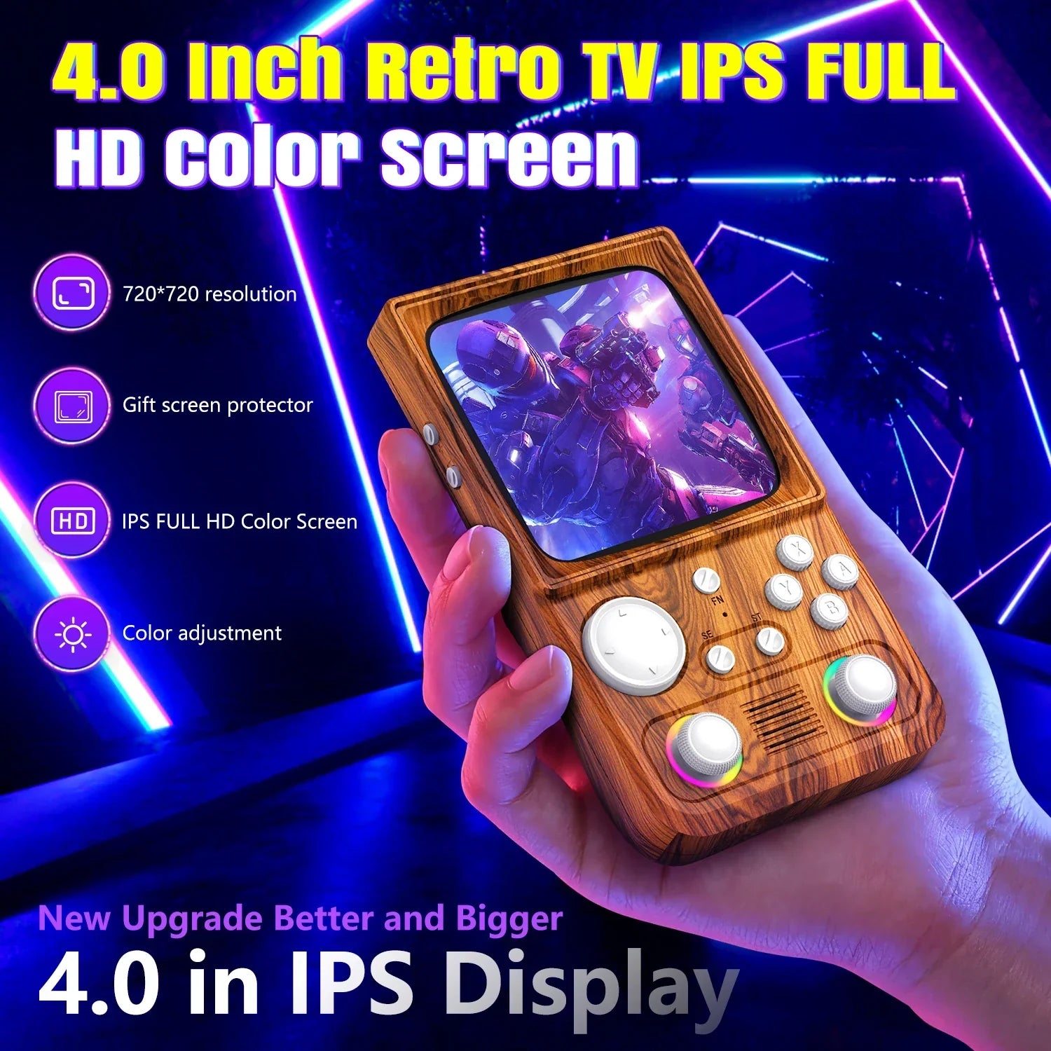 Designed with a 4.0-inch HD IPS screen, it blends a nostalgic wood-grain retro TV aesthetic with modern visual clarity. Bright colours, crisp details, and Glow-Edge technology recreate that warm CRT glow for true retro vibes.