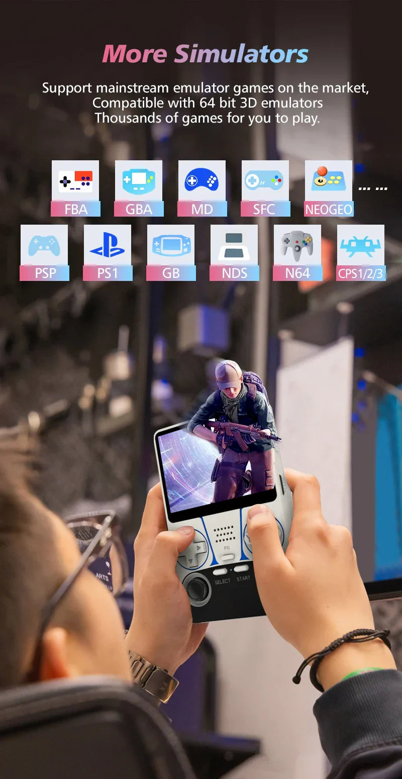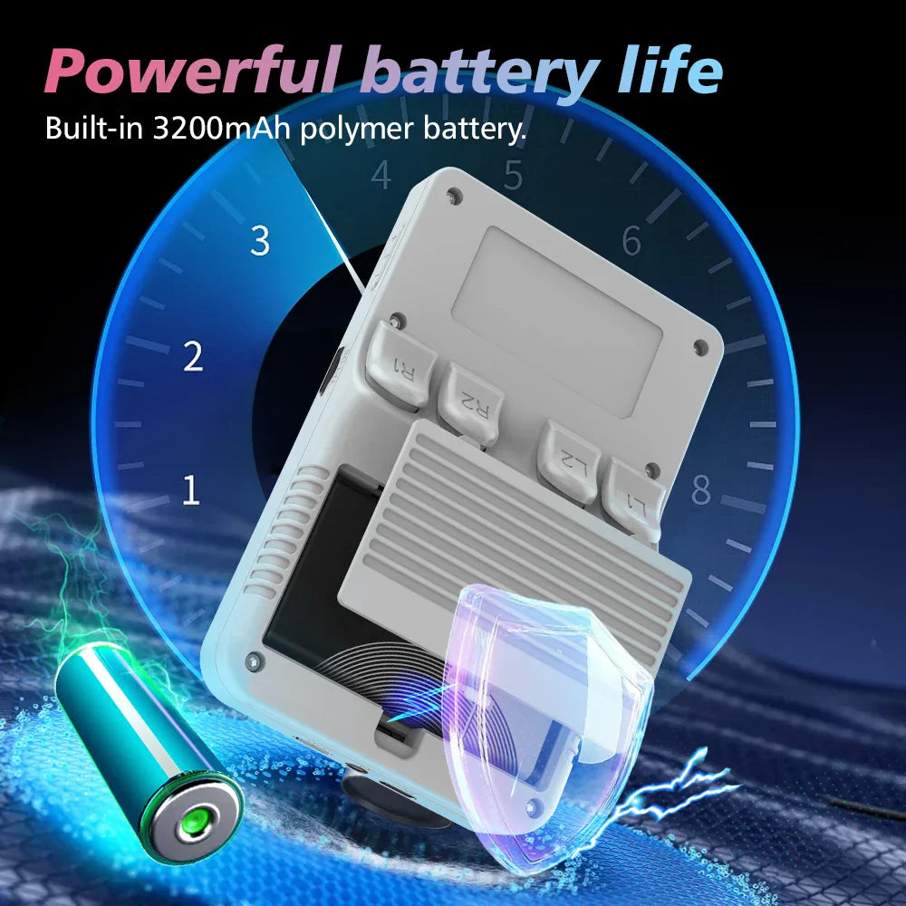With WiFi connectivity and OTG 2-player mode, you can connect controllers and play side-by-side with friends. The 3200mAh rechargeable battery offers long-lasting playtime, while the lightweight and ergonomic design ensures comfort during extended gaming sessions.